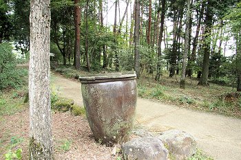 穴窯とは、山の斜面に穴を掘って、土壁をそのまま窯の壁に利用します。天井は木の枝などでアーチ型の枠組みをしておき、それに粘土を叩きつけ、粘土が乾いたところで燃やすと、焼け固まった天井になったわけです。