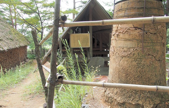 一口に焼き物といっても、その焼き方は縄文や弥生式土器を焼いた「野焼き」から、山の斜面に築く「穴窯」へ、さらに炎を滞留させる細工をほどこした「割竹式窯」に、そして現在の「登り窯」へと発展してきました。当「炎(ほむら)窯」は、半地下式の穴窯を再現したものです。