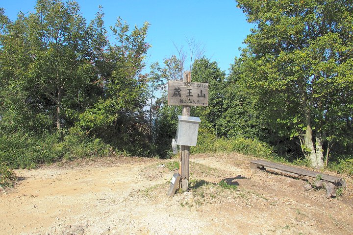 標高226mの蔵王山、東側最高峰を蔵王が峰といい、かつては陸軍の測量台が置かれていたが、現在は国土地理院の標石柱がある。