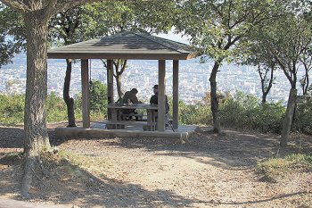 ここを登りきりますと、ほどなく頂上の休憩所が眼に入って来ましたネ(^_^)v