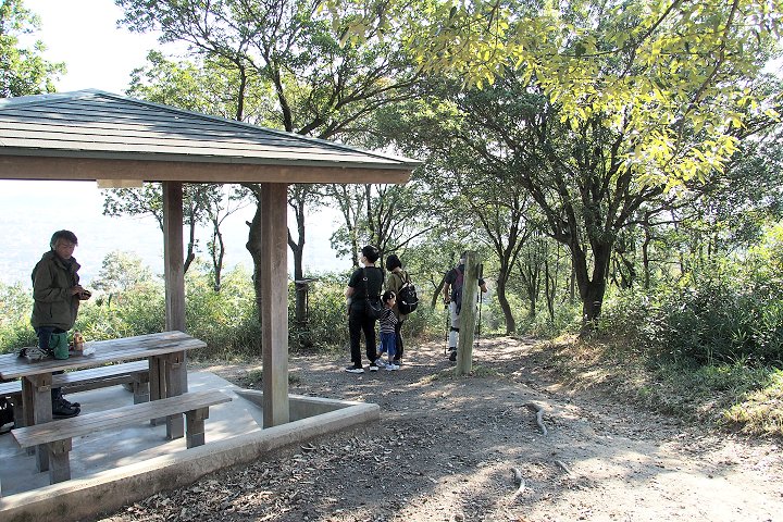 休憩所で談笑しておられました先客お二人のうち、お一人がソロソロ下山されますようで、帰り支度をしておられます所へ、お子さんお二人を連れたご夫婦が来訪です。