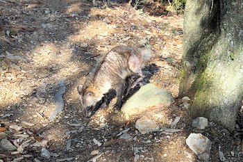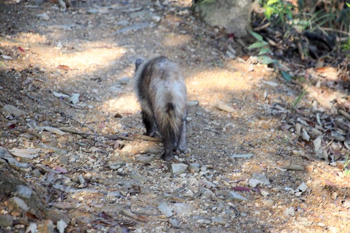 よくよく見ますと、イタチでもありませんし、痩せ細ったタヌキsanでしょうネ(^-^)GONsanの存在には全く気付きませんで、前方をトボトボ歩いております。で、この様子を3枚ばかりパチリ。