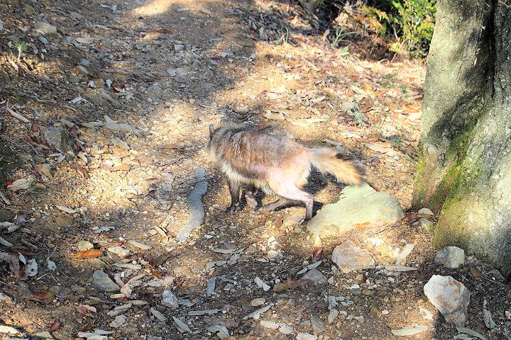 先に下山されました方を追いかけますように下っておりますと、下山道右側の崖下から突然小動物が(^.-)☆