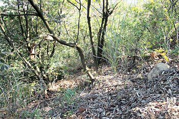 このまま後方から付いて歩けば良かったのでしょうけど、つぃ、「やぁ、今日は(^-^)/」と後方から声を掛けましたら、もぅビックリのタヌキsan。急いで崖下の雑木林の中に逃げ去ってしまいましたネ。