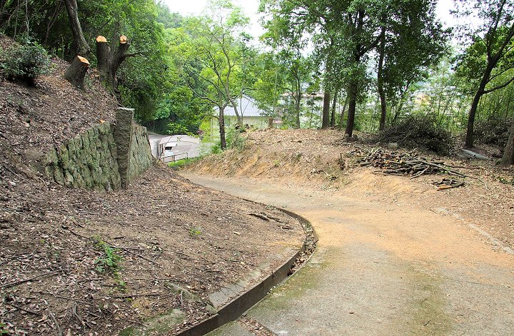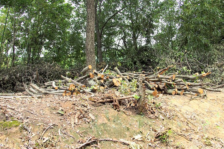 墓所清掃の直後ですから、墓所への進入路脇には伐採されました樹木が集められ、いかにも清掃直後が伺われましたネ(^.-)☆