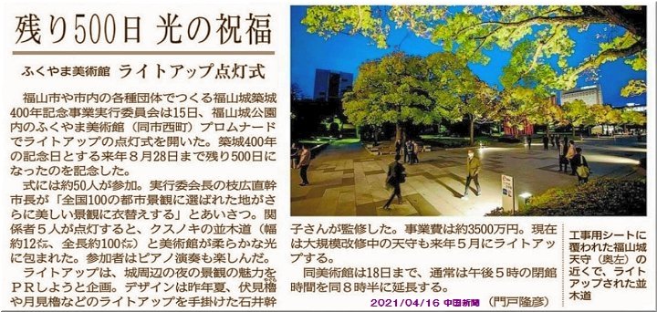 4/16(金)付け中国新聞sanの朝刊記事に誘われて、「ふくやま美術館」プロムナードに出掛けてみました(^.-)☆