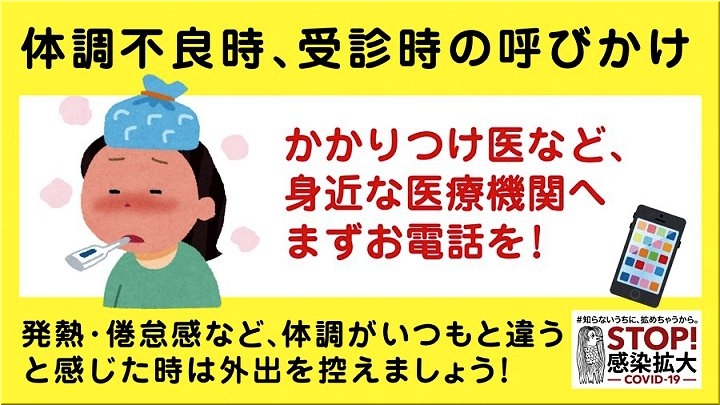 発熱・倦怠感など、体調がいつもと違うと感じた時は外出を控え、まずは事前にかかりつけ医などに電話で相談しましょう。(画像引用:厚生労働省Twitter)