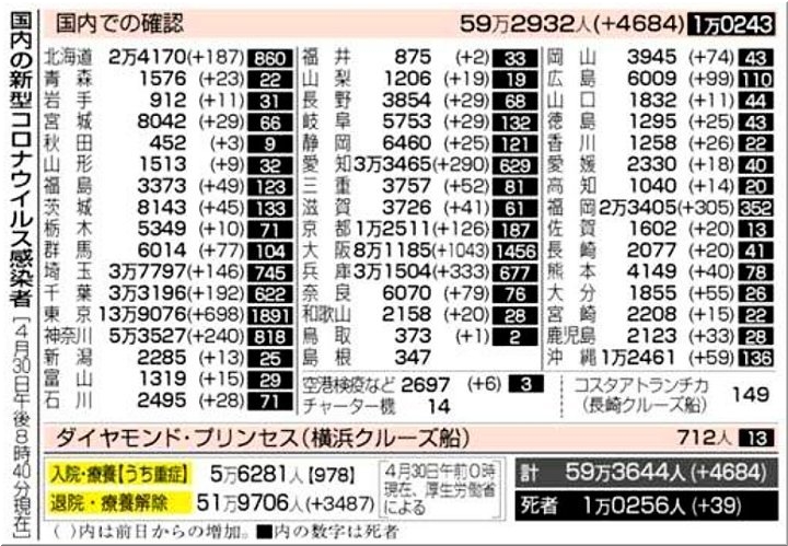 4/25(日)、682〜686例目となる5人の感染者が確認されました。