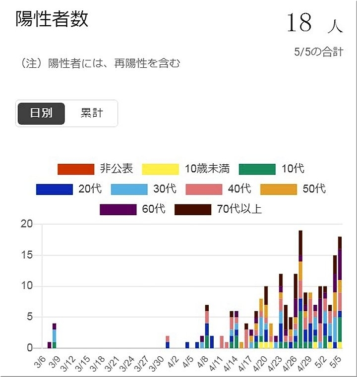 5/5(水)、785〜802例目となる18人の感染者が確認されました。詳細は画像のとおりです。