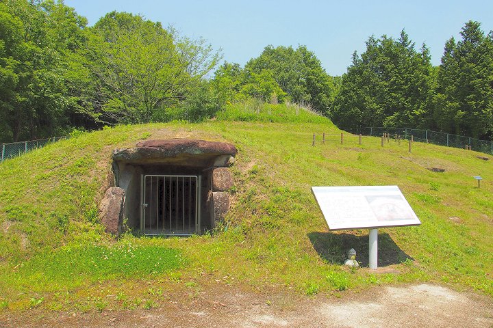 墳丘は直径約12mの円墳で、周囲に幅2m〜2.8m、深さ約40cmの溝を巡らせています。石室は全長約5.4m、高さ1.5mで南南東の方向に開口していました。