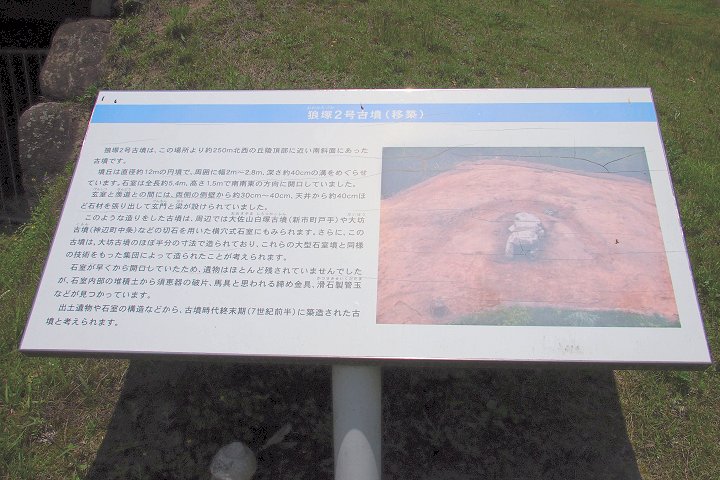 そして、この案内板の真ん前に存在しますのが「狼塚2号古墳」でありました。狼塚2号古墳脇にも説明板が設置されていますので、眼を通しますと、