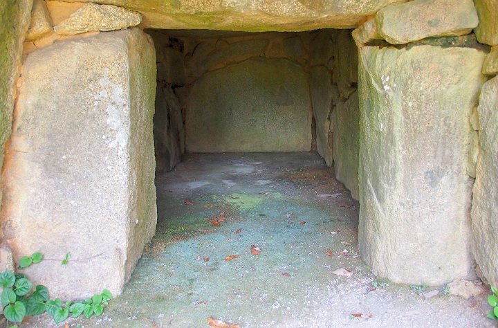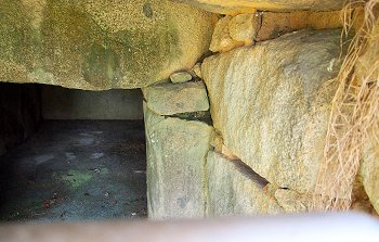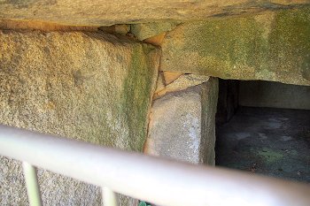 石室と羨道との間には、南側の側壁から約30cm〜40cm、天井から約40cmほど石材を張り出して玄門と梁が設けられていました。