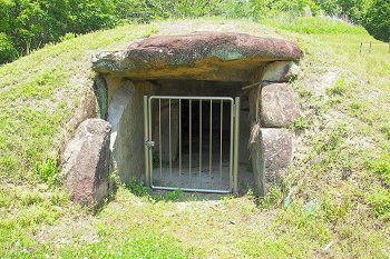 このような造りをした古墳は、周辺では大佐山白塚古墳(新市町戸手)や大坊古墳(神辺町中条)などの切石を用いた横穴式石室にもみられます。さらに、この古墳は、大坊古墳のほぼ半分の寸法で造られており、これらの大型石室墳と同様の技術をもった集団によって造られたことが考えられます。