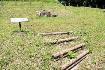 この公園内には他にも狼塚2号、正福寺裏山1号が移築されています。狼塚2号は全長5.4mの横穴式石室で神辺町大坊古墳の1/2の大きさで設計されているそうです。入り口に柵があって中には入れませんがちょっと中途半端、子供だと中に入れそうだ(子供だけがここに来るとは思えないが)。