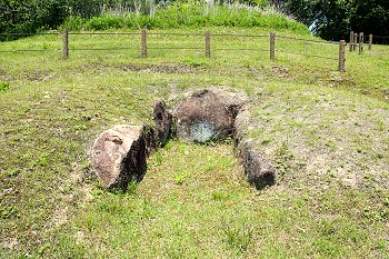 と言うことは説明板に載っている1号も存在するんだと思って公園の外側に出たらちゃんとありました。それも一番大きな石室でラッキー。石室は羨道は殆どか遺失しているようで現存長4m程、一番奥の天井石も玄室内に落下していますが残った1枚の天井石はかなりの巨石、奥壁も巨石の鏡石を据えています。公園南側の2号は痕跡程度のようだ。