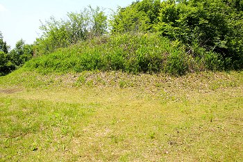 狼塚2号古墳は、この場所より約250m北西の丘陵頂部に近い南斜面にあった古墳です。
