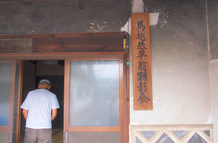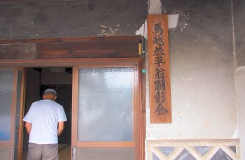 道路に面しました表側は画像に納めましたので、前・中・奥の三列の建物の内の、木之子公民館として使用されています真ん中(二列目)の建物に向かい、駐車・生家見物の許可を求めますと、事務所内のスケジュール掲示板に何やら記入しておられます男性が、「あぁ、イィですよ。奥の建物は『馬越恭平資料館』ですから、今からご案内しますよ(^-^)」との事で、ご親切にも、「馬越恭平翁顕彰会」の方が管理しておられます『馬越恭平資料館』に入らせて頂ける事に(^_^)v