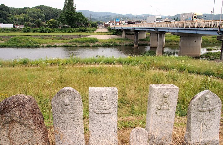旧馬越橋は、この石仏が置かれています場所に架かっていましたのでしょうネ…