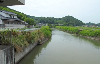 この稲木川に架かります橋の場所は、樋門(水門)ですネ。この橋の上から周辺を見廻しますと、本当にのどかな田園風景であります。