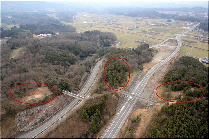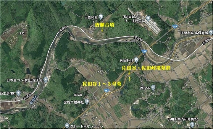 現在、国道183号線と国道183号線バイパス(高道路)が、墳墓群の間に通っており3群がそれぞれ陸橋で繋がっています。