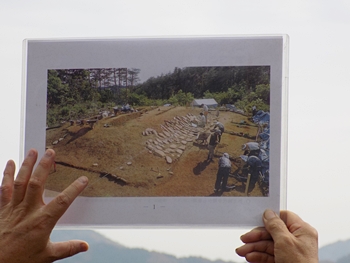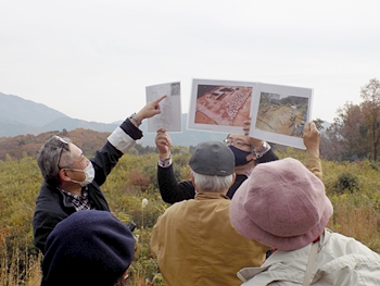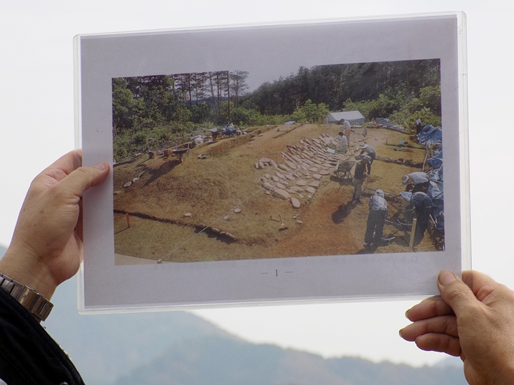 ここは、昭和61年頃に発掘調査が行われましたようですけど、現在は、元通りに埋め戻されております。当時の発掘調査時の写真で説明して頂きました(^.-)☆