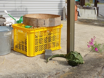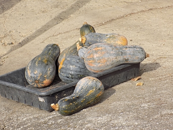帰路では民家の庭先にひょうたん型のカボチャが6個ばかり無造作に置かれてありました。