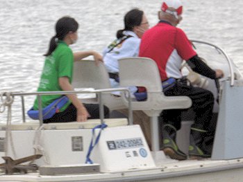 通訳の方が乗られたモーターボートも近付いて来まして、「ご質問がありましたら、何でもどぅぞ…」との事ですから、見学者の皆様が色々ご質問を(^.-)☆