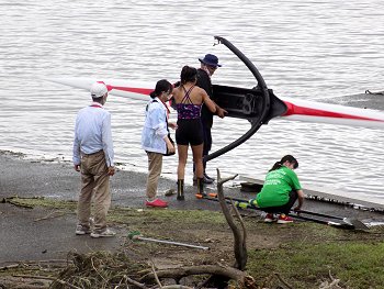公開練習も終わりますと、使用されました艇は、こぅして選手ご自身が担いで所定の場所にと格納されますようですネ(^.-)☆