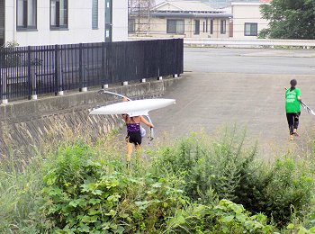 観客は、見学者4名と、河川敷散策者が3名ばかりで、総勢7名。スポーツ振興課の若者を加えますと計8名の賑わいでありました(^-^)//"