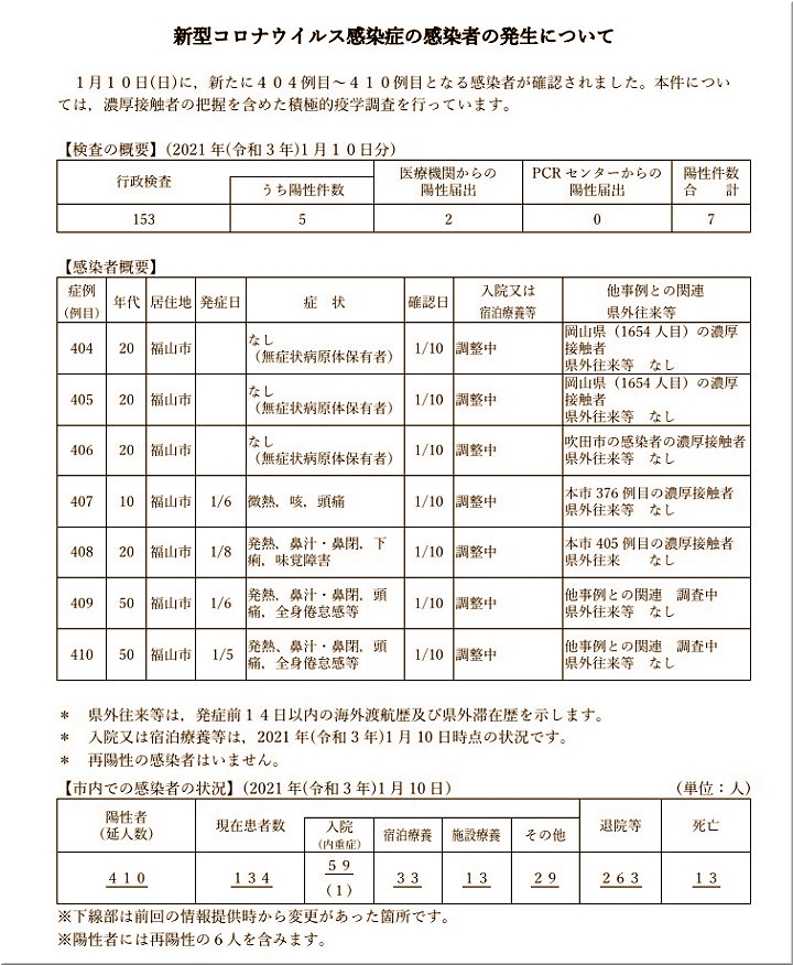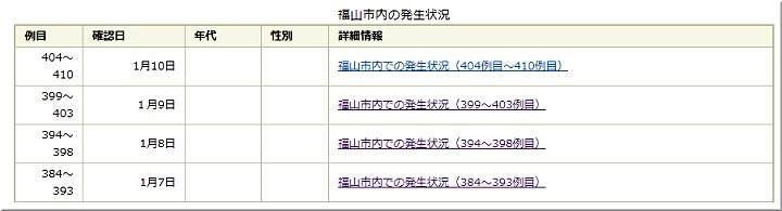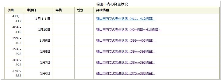 これで、福山市では410例目の患者さんとなりますネ。7名のうち、福山医療センター関連の発生者は無いようであります。