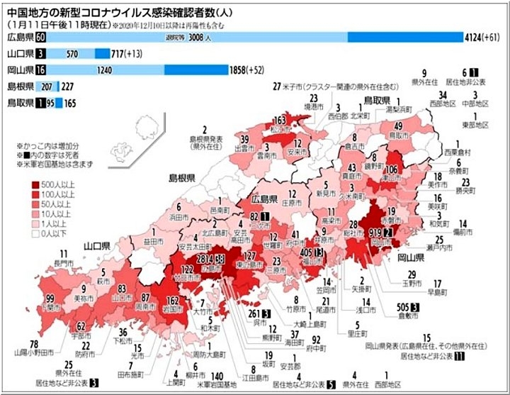 ◆広島県3人死亡、61人感染 11日の新型コロナ クラスター関連相次ぐ