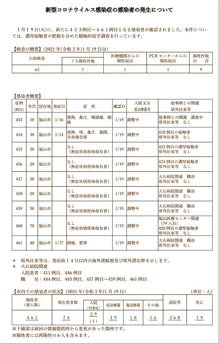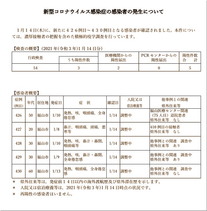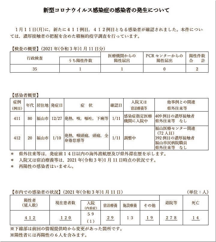 その内の1名が福山医療センターの関連で、これで福山医療センター関連は72人目の発生となりまして、福山市では412例目の発生となりますネ。