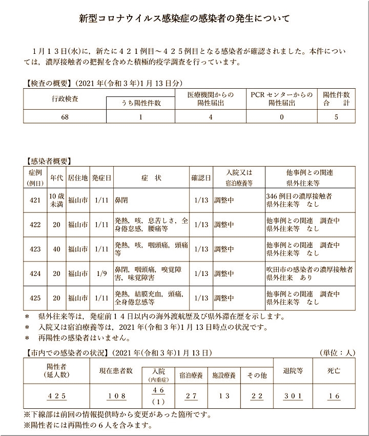 福山市の発表、そして中国新聞sanの報道によりますと、昨日・今日と、福山市では13名の新たなコロナ感染者が…