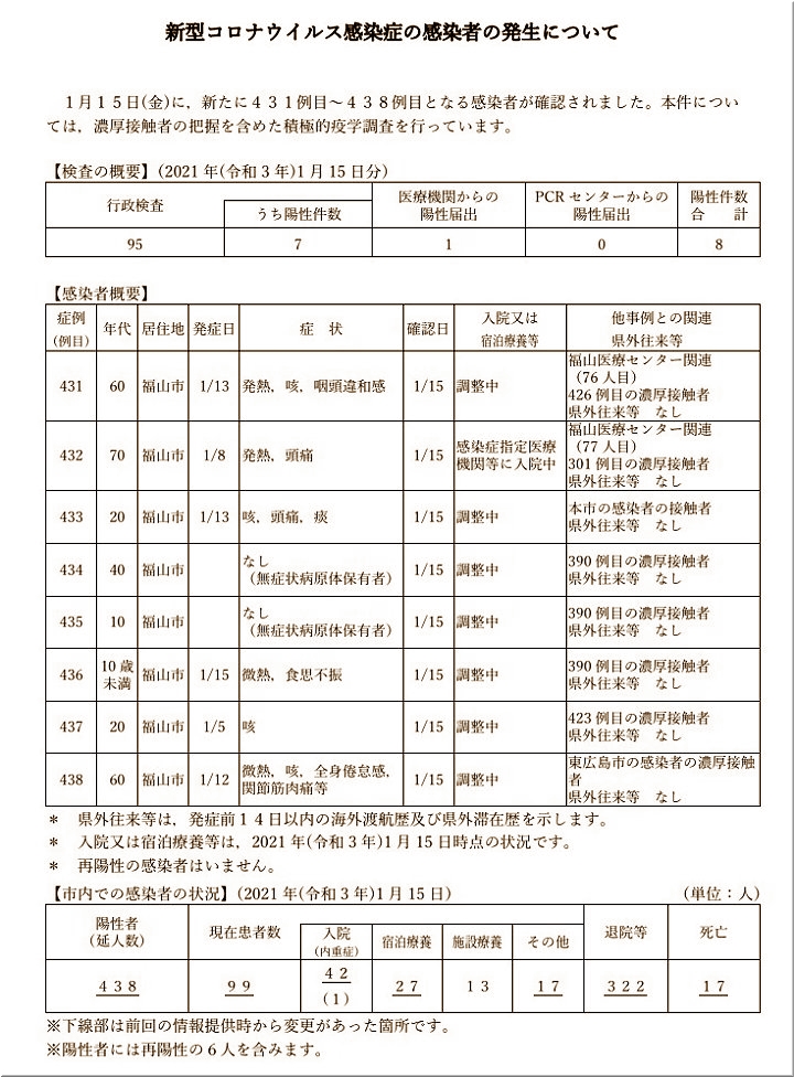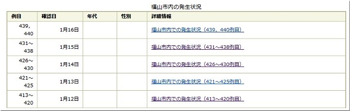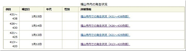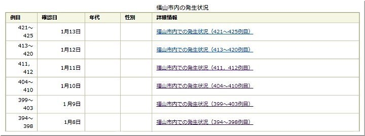 これで、福山市では425例目の発生で、13名のうち2名の方が福山医療センター関連ですから、同センターでの発生者は74人目となりますようですネ。
