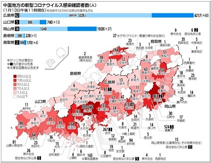 ◆広島県、2人死亡33人感染 12日の新型コロナ