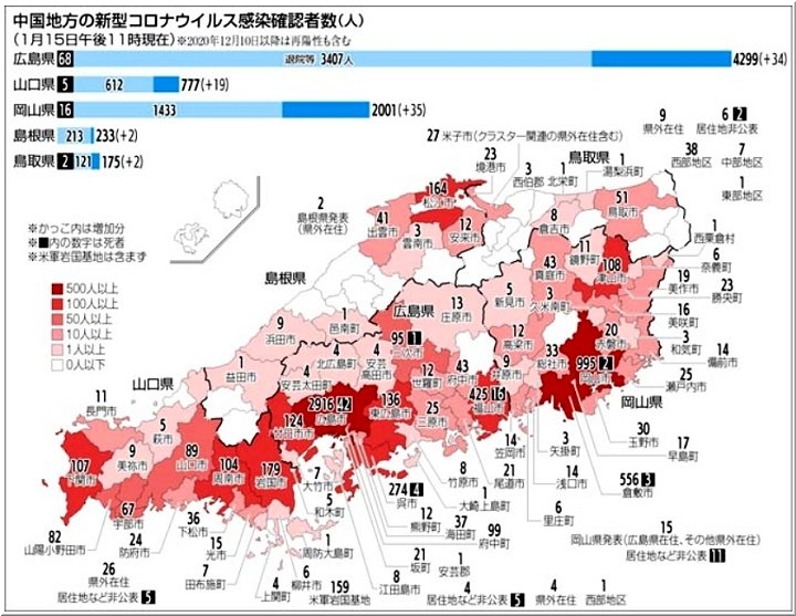 ◆広島県内で55人感染、3人死亡 三原特別支援学校でクラスター 16日の新型コロナ