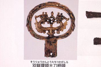 2002年度からの発掘調査では、古代備後国の首長墓にふさわしい、墳丘や石室の存在が判明し、前方部と後円部の両方に横穴式石室があるのは県内唯一です。出土品は、杯や甕などの土器のほか、鍔(つば)、杏葉(ぎょうよう)などの金属製品で、全国的に例のないデザインの双龍環頭柄頭(そうりゅうかんとうつかがしら)もあります。