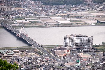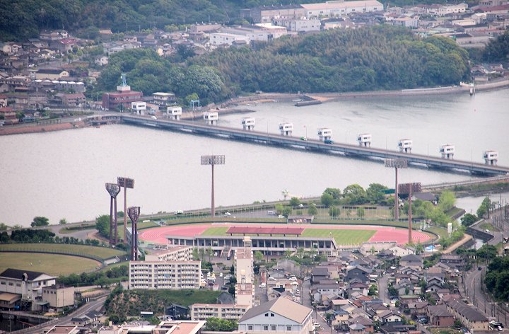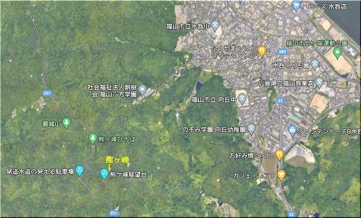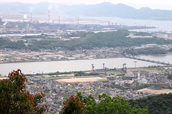 熊ヶ峰山頂下の駐車場を目前に、少し手前の眺望可能な場所に車を駐め、芦田川大橋・我が町水呑・竹ヶ端運動公園・JFEを眺望し何枚かパチリ。そして、熊ヶ峰山頂への上り口の駐車場に到着です。