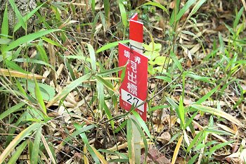 「貴方は、どちらの関係の方なんですか?」と、お尋ねですから「単なる、通りすがりの山歩き愛好家です…」とお応えし、「あなた方こそ、どちらの関係で何をなさっておられるのですか?」とお尋ねしますと、「私は『福山山岳会』のメンバーで、熊ヶ峰山頂周辺の国有林・私有林の境界を確認しております…」との事でありました。