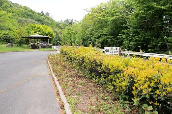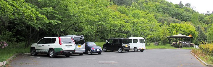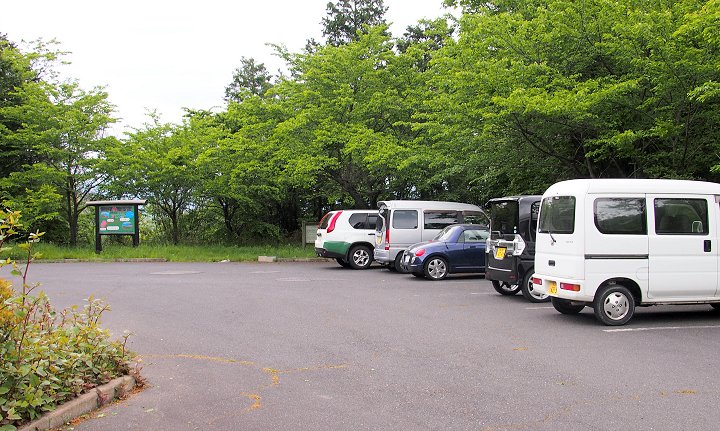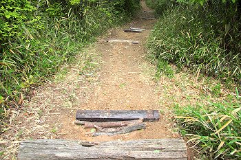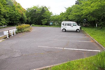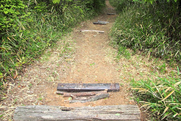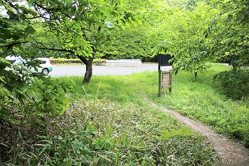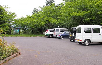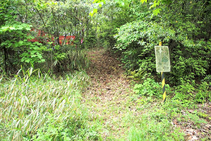 暫し駐車場を見廻しておりますと、たった今下って来ました登山道の右側に、従来の崖っぷちを通ります登山道進入口もありました。
