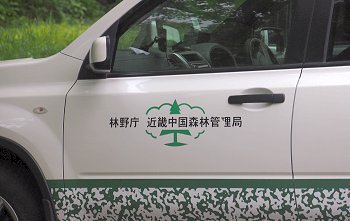 駐車場まで降りて来まして、改めて駐車中の4台の車に眼を向けますと、一番手前の車の車体には「林野庁 近畿中国森林管理局」の記載が…
