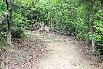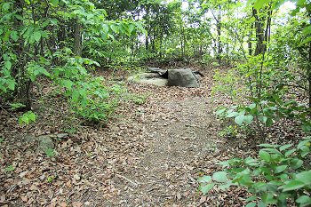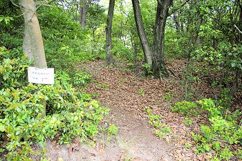 整備されました遊歩道を進んで行きますと、程なく「高射砲陣地跡 砲座」の案内表示板が…