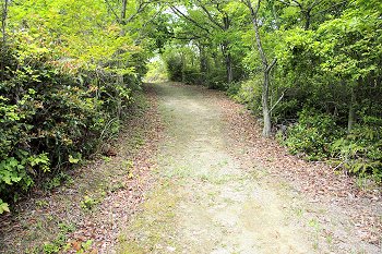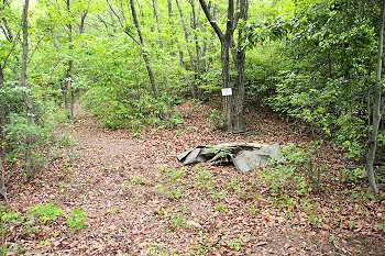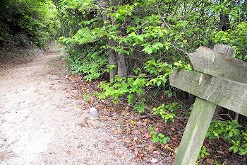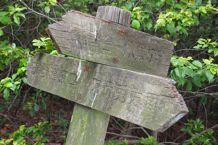 遊歩道に戻り、また暫く直進して行きますと、三叉路に。ここには、朽ちかけ始めた案内標識が(^.-)☆