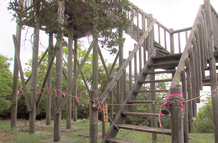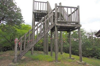 展望台にと上がりますと眺望も開けますのでしょうけど、残念ながら展望台にはロープが張られ、「立入禁止」でありました(^-^;