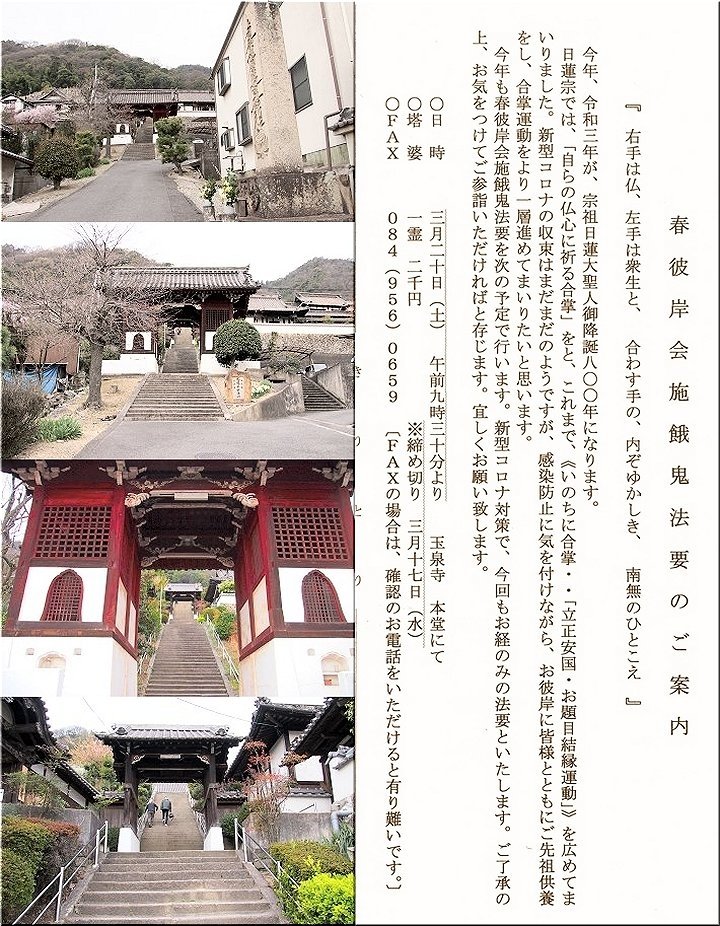 | 2021/03/20(土) 玉泉寺「春彼岸会施餓鬼法要」参詣 |