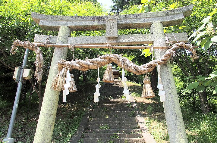 この神社は加茂小学校の西約700mに鎮座しています。この社を探していたとき、すぐに入口は見つけられたのですが、鳥居の額に「妙見宮」と書かれていたので、「此処は違うんじゃない?」といったんは通りすぎてしまいました。けれど付近に他には神社は見あたらず、「やはり此処なんでしょう。」と戻ってきての参拝となりました。江戸時代までは「妙見宮」のようでしたが、明治以降いつの頃か社名変更されているようです。