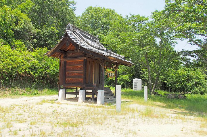 当社は古くから妙見菩薩(北辰)を祀り、江戸期の「備陽六郡誌」に石鳥居の妙見尊篇額の記録が残る。妙見菩薩は古代風水(天文・地理)の中核となる道教・仏教の習合神で、日本の風水(陰陽道)の宗家・賀茂氏、法華経を説いた聖徳太子と縁が深い神である。東向こうにある岡廃寺の妙見堂の可能性もある。