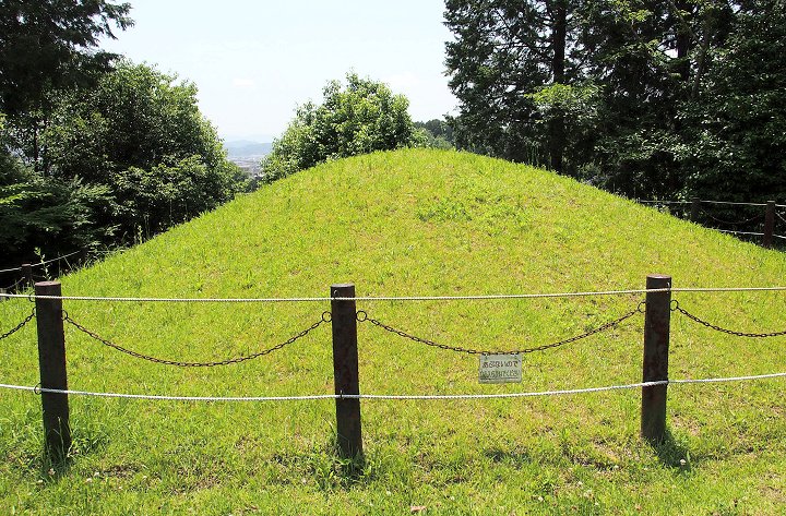 造営年代は全国的に古墳が造られなくなる古墳終末期(飛鳥時代・7世紀後半)。様式は横口式石槨墳。石室(写真1)の石槨部(箱形の石で棺を納める部分)は、長さ2.82m、幅1.03m、高さ0.95m。羨道部の長さは東3.84m・西3.63m、幅1.7〜1.46m、現高1.25mである。石室の石を平滑にした切石で、石組みの目地に白い漆喰の跡が残る。墳丘の縦横約14m、高さ3m、形状は未調査で方墳・円墳・八角地形の説がある。出土物は残存しない。立地・造墓は古代風水思想によると考えられる。