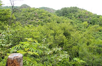 展望広場〜蔵王憩いの森(駐車場)間の丁度中間辺りまで戻って来ますと、「巌山観音堂」への目印なのかも…ブロックが標識代わりに設置されていますので、ここを南側の斜面にと向かいます。