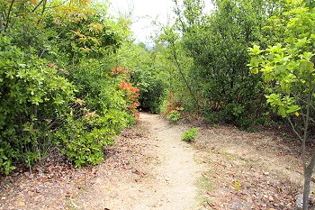 この岩場の左側には、下に降ります狭い歩道が。先ほど絶壁を見下ろしました際には、崖下にベンチがありましたから、そこに下りられるのでしょうネ(^.-)☆